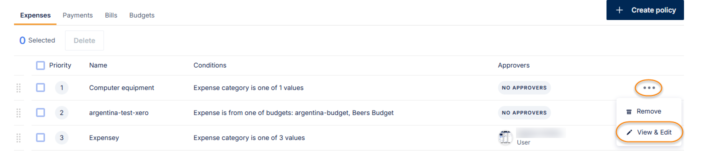 How does a user edit a policy?