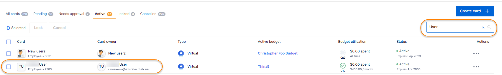 How can a user search cards?