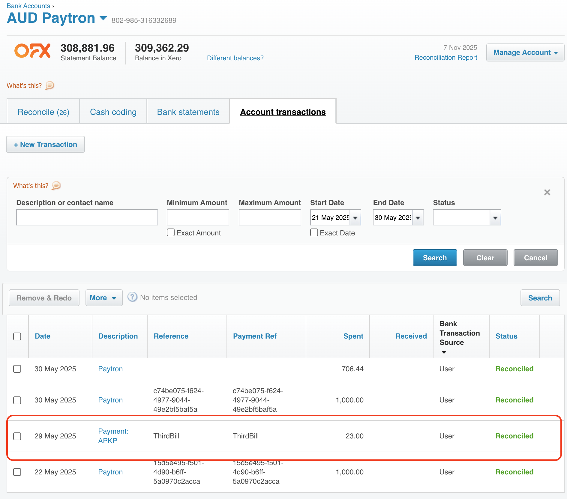 InformationDetailsOnce you have set up your OFX platform to connect with Xero, all new bills and related transactions will sync automatically at the appropriate time. Transactions that occurred before the integration was live will not be synced automatically.Requirements and Pre-requisites:You must have an active Xero integration set up in your OFX account.The Xero user authenticating the integration must have permission to create bills in Xero.If you transact in multiple currencies, your Xero plan must support multicurrency.Only new bills created after integration setup will sync; pre-existing bills and transactions require manual handling.The bills with payment feature is only available for Full Suite plan.Next Steps:To use the Xero integration for bills, follow these steps:Set Up Xero Integration:Ensure your OFX account is connected to Xero. For setup instructions, see: How to connect with Xero.Bill Creation and Sync (Bidirectional): Bills can be created in either OFX or Xero and will sync bidirectionally. This makes bills a truly collaborative feature where finance teams can work in their preferred platform while maintaining data consistency across both systems.OFX to Xero Sync: Create/upload a bill in OFX.If the recipient has never been paid before via OFX, the bill will appear in OFX with Draft status.If the recipient has been paid before via OFX, the bill will appear in OFX with Awaiting Payment status.Xero to OFX Sync: A bill in Xero will only sync to OFX when it is in the "Awaiting Payment" status. This status is sometimes referred to as an "Approved Bill" in Xero.Once a bill reaches "Awaiting Payment" in Xero, it will sync to OFX for payment processing.The bill will sync to the “Awaiting Payment” status in OFX if it is for a recipient that you have paid previously otherwise if it is the first time you are paying this supplier it will go to “Draft” status to set up the banking details for the recipientBill Payment and Status Updates:When a bill is paid in OFX, the integration automatically updates the corresponding bill in Xero, marking it as “Paid” and adding the payment record.This keeps both systems in sync without manual intervention.Handling Pre-Integration Transactions:Transactions and bills created before integration will not sync automatically.You can import historical transactions into Xero via CSV or set an opening balance.Payments without BillsYou can create payments without Bills, see How are Standalone Payments synced with Xero? Why is this important:The Xero integration for bills enables seamless, bidirectional syncing between OFX and Xero. This ensures your accounts payable process is efficient, reduces manual data entry, and keeps your financial records consistent across both platforms. By syncing bill statuses and payments automatically, you save time and minimise reconciliation errors.Related FAQ Article:How do I create a payment? How do I upload bills? How are Standalone Payments synced with Xero? TitleHow does the Xero Integration work for Bills?URL Namekb-3141697559-how-does-the-xero-integration-work-for-bills