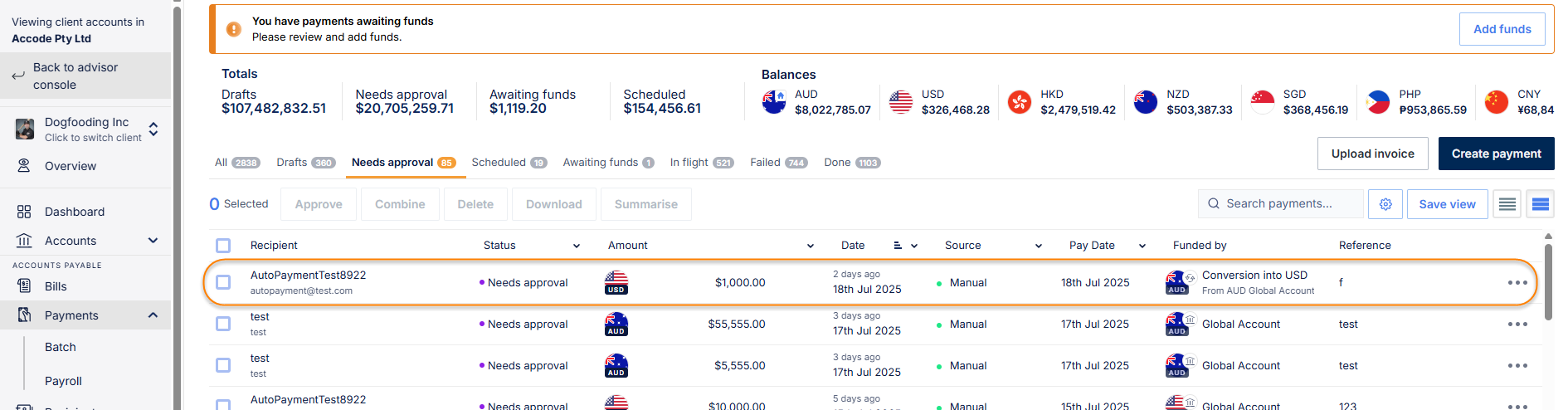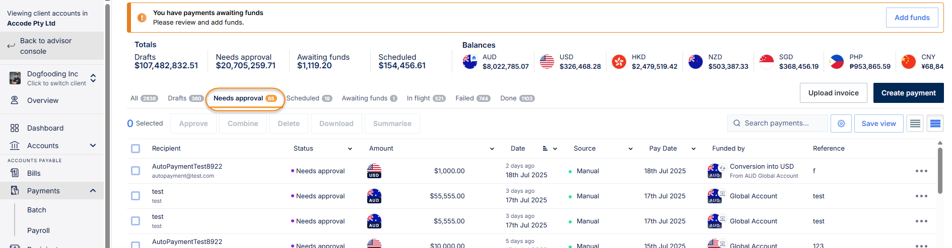 How do I know who needs to approve a payment?