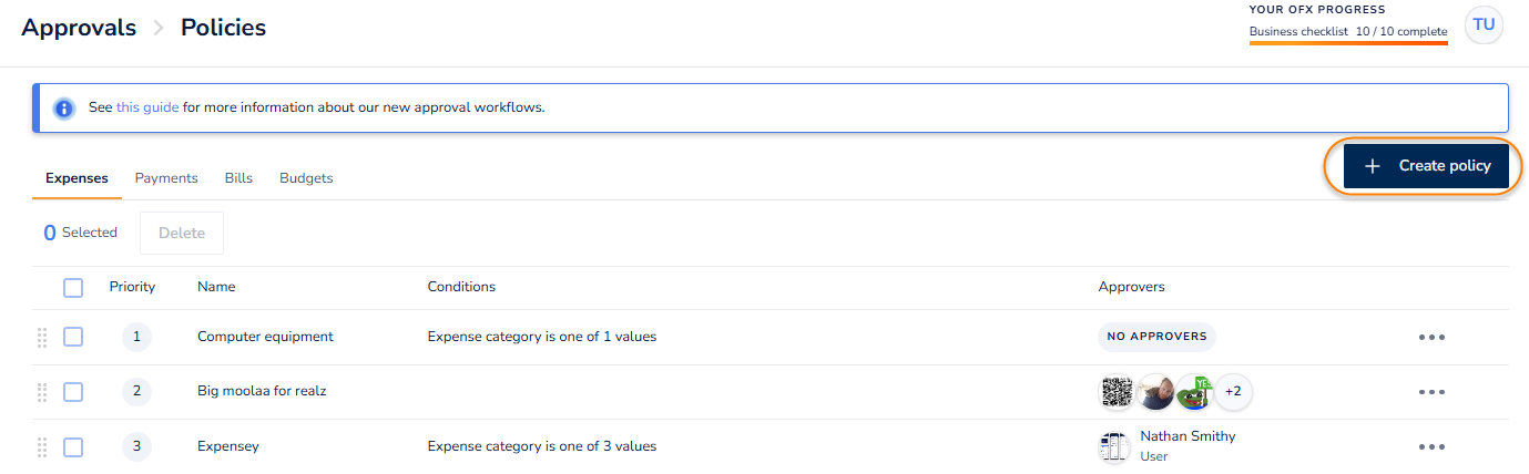This article covers the topic of how does a user create a policy for an expense? to create a policy for an expense, users should follow these steps: to create a policy for a payment, users should follow these steps: ?